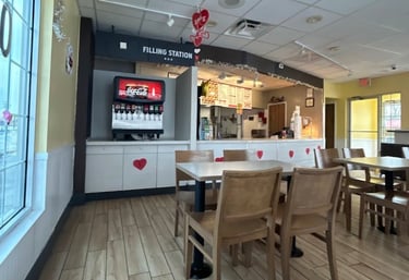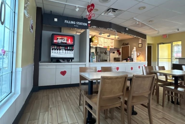 You can eat inside the restaurant or go through the drive-thru.